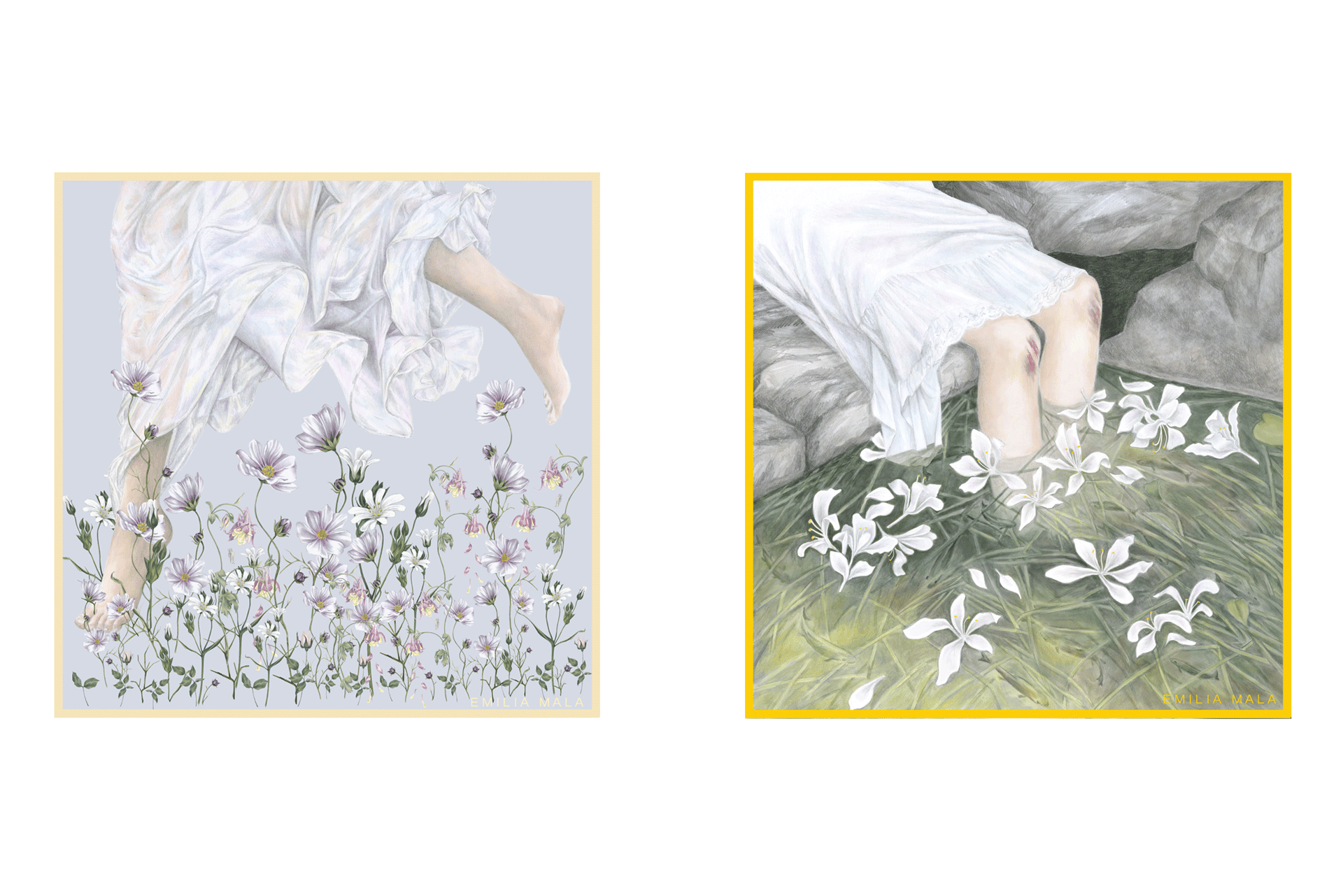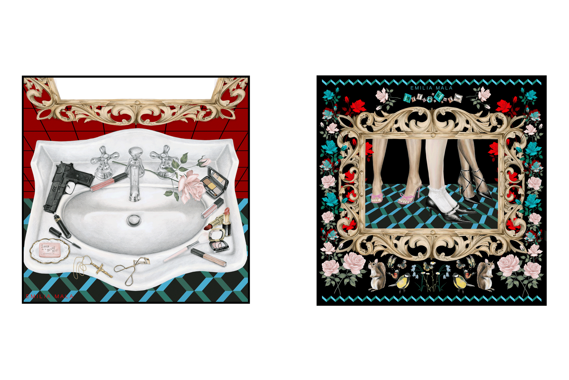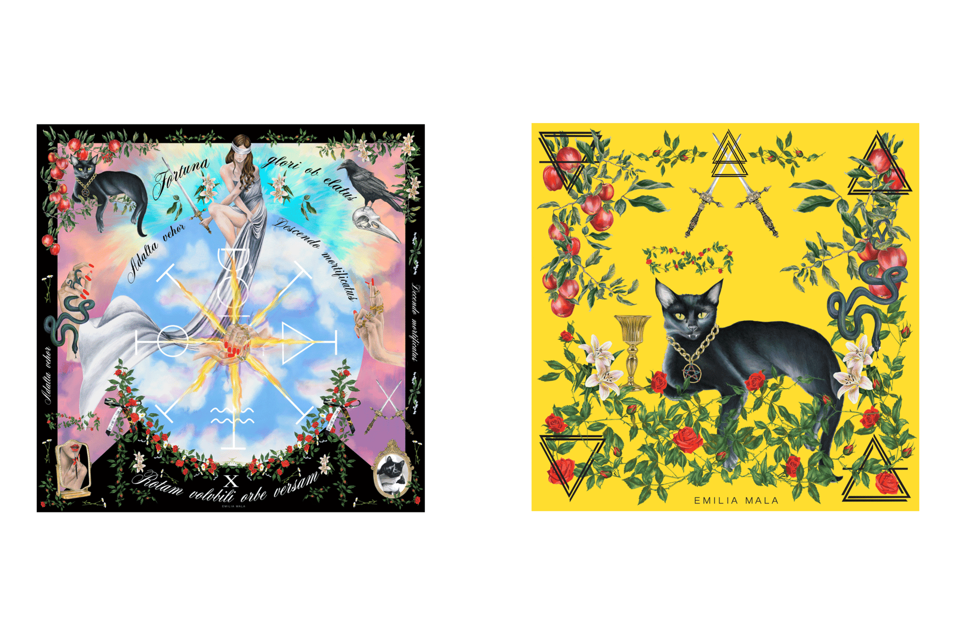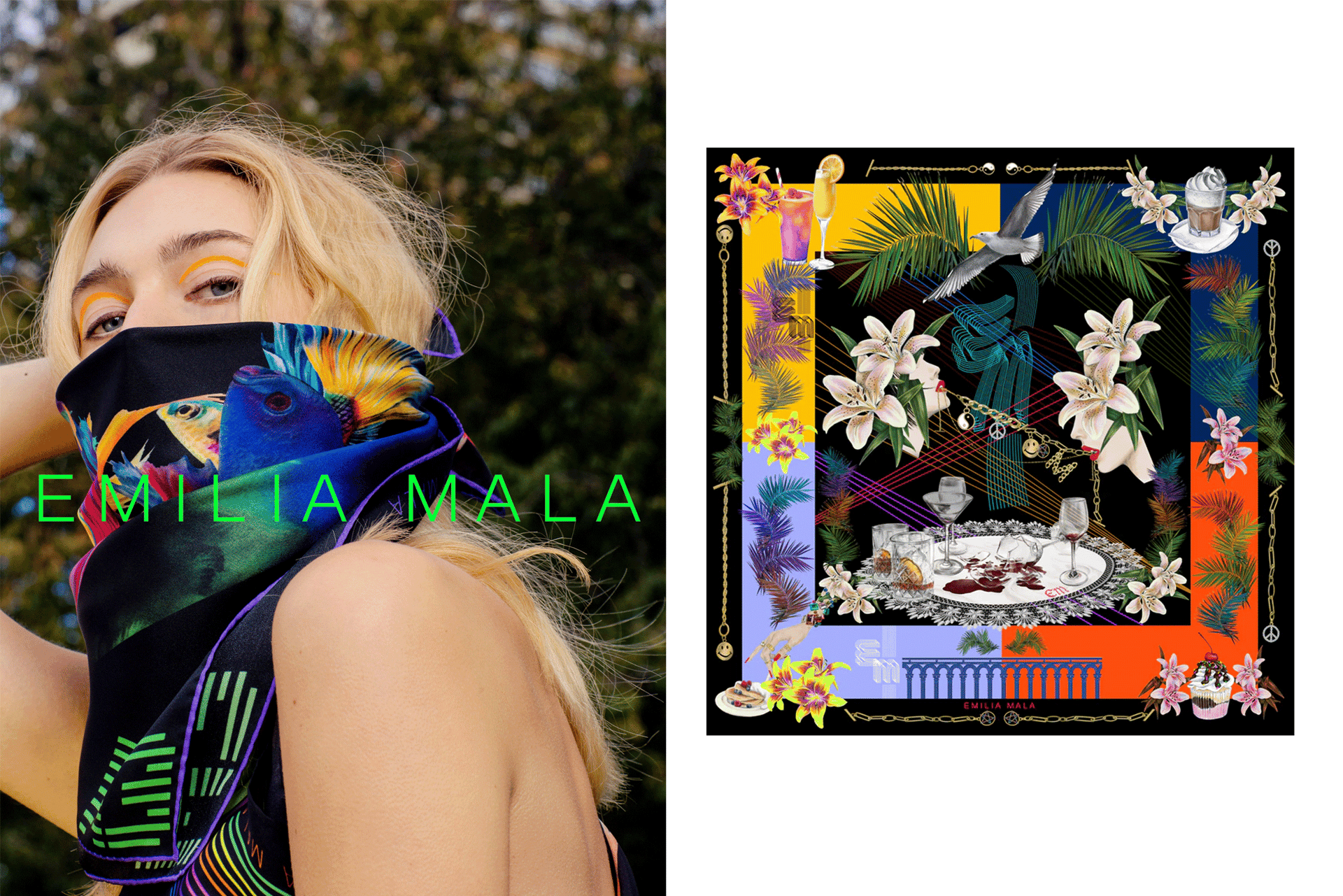 Emilia Mala is a London-based brand built around strong visual storytelling, with silk scarves forming the foundation of its identity. The brand is rooted in vibrant, hand-drawn print narratives, drawing inspiration from fine art, surrealism, symbolism and female empowerment, . This translates into a visual language defined by contrast — elegance and edge — expressed through considered colour stories and a subtle, mystical undertone.